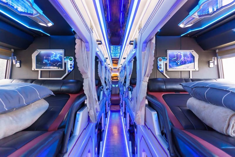 Không gian trên xe được bố trí khoa học, giường nằm rộng, khoảng cách giữa các hàng ghế vừa phải, giúp hành khách hạn chế cảm giác mệt mỏi khi di chuyển liên tục nhiều giờ. Xe được vệ sinh thường xuyên, đảm bảo sự sạch sẽ trong suốt hành trình.