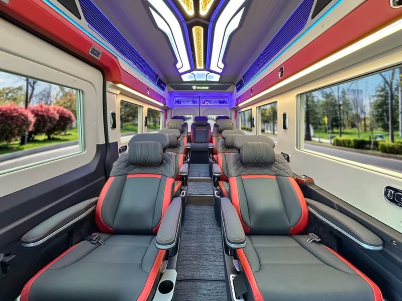 Mạnh Quân Limousine khai thác dòng xe ghế VIP cao cấp, hướng đến nhóm khách hàng yêu cầu cao về trải nghiệm di chuyển. Không gian xe được thiết kế hiện đại, ghế rộng, khoảng cách giữa các ghế thoải mái, phù hợp cho cả khách công tác và khách du lịch.