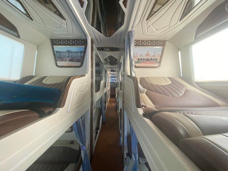 Hệ thống giường nằm được đầu tư mới, bọc da sạch sẽ, kiểm tra kỹ lưỡng trước mỗi chuyến đi. Không gian xe yên tĩnh, phù hợp cho hành khách cần nghỉ ngơi trong suốt hành trình dài.
