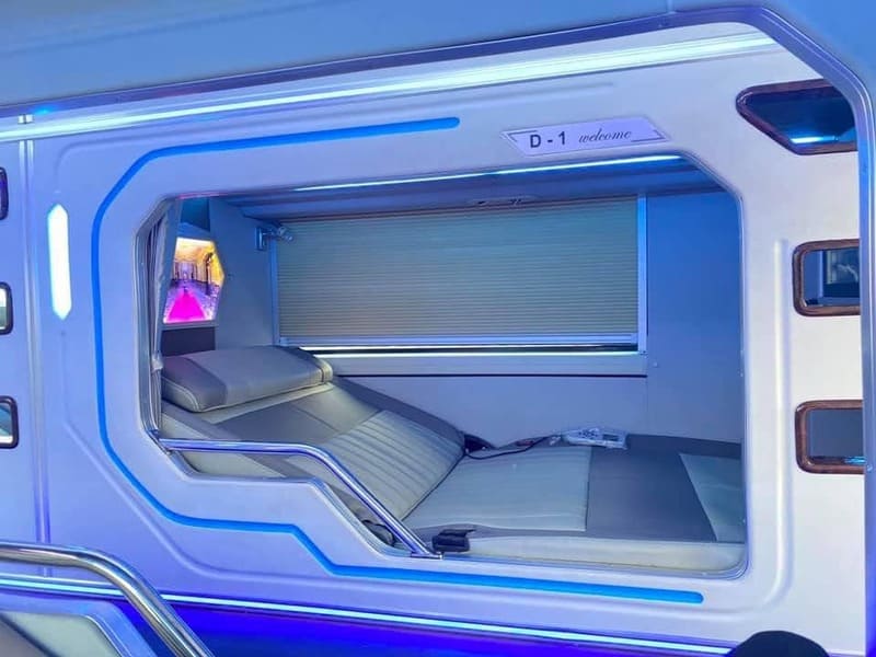 Trên xe có trang bị wifi, nước uống, khăn ướt phục vụ miễn phí, cùng với chăn gối được chuẩn bị kỹ lưỡng trước mỗi chuyến. Không gian xe sạch sẽ, thoáng mát, phù hợp cho những hành khách cần nghỉ ngơi trọn vẹn trong suốt hành trình ban đêm.