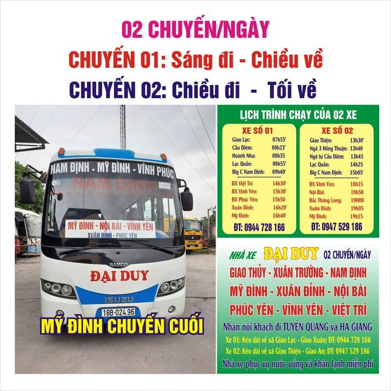 Tuyến xe: Dòng xe nội địa liên tỉnh (thường hoạt động chính trên các tuyến miền Bắc) nhưng được nhiều hệ thống vé tổng hợp ghi nhận phục vụ một số chuyến mở rộng liên tỉnh