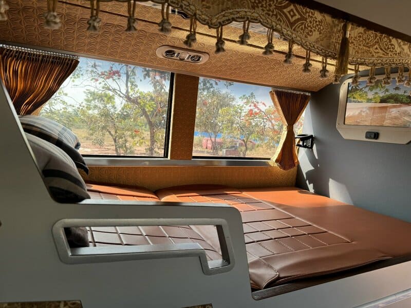Không gian xe được bố trí khoa học, mỗi giường có rèm che riêng tạo sự riêng tư khi nghỉ ngơi. Hệ thống điều hòa hoạt động ổn định suốt hành trình, hạn chế cảm giác mệt mỏi khi di chuyển đường dài.